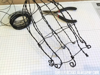 I basically followed the same method as I did with the Halloween Fairy, but added two extra wires around the spokes for support and to give it more of a birdcage look.